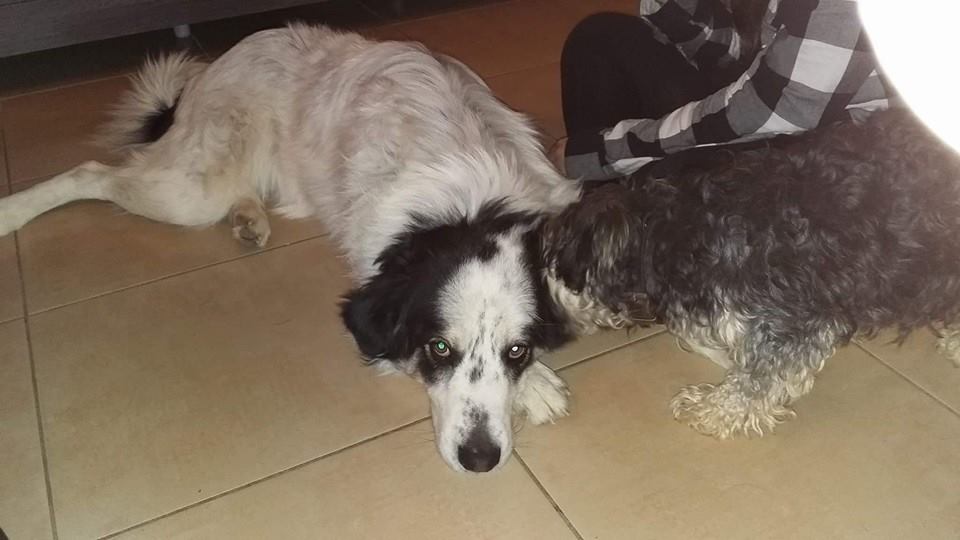 Voici Jumper adopté en octobre 2014 chez vous. Ici il est en compagnie d'un autre copain (Eros). Jumper porte bien son nom car il n'arrête pas de sauter (y compris au dessus du grillage) et nous oblige à lui acheter un collier anti fugue mais c'est un amour de chien !
